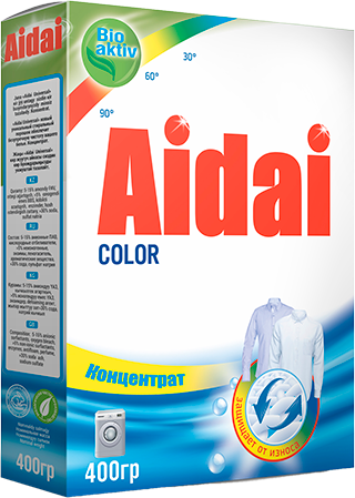Aidai Color – Предназначен для стирки цветного и белого белья во всех типах стиральных машин при температурах от 30 С до 95 градусов, а так же для ручной стирки. Для всех видов тканей, кроме изделий из шерсти и шелка. Обеспечивает деликатный и эффективный уход за цветными тканями, не разрушает структуру волокон. Благодаря оптимальному сочетанию энзимов, качественно удаляет даже самые трудновыводимые загрязнения. Порошок содержит компоненты, помогающие защитить стиральную машину от накипи и известкового налета. Условия хранения: Хранить при относительной влажности воздуха не более 95%, избегая попадания прямых солнечных лучей нагревания выше +35ᵒС. По истечения срока годности утилизировать как бытовые отходы. Товар сертифицирован. Характеристики: ТипСинтетическое моющее средство НазначениеДля цветного белья Вид стиркиАвтомат