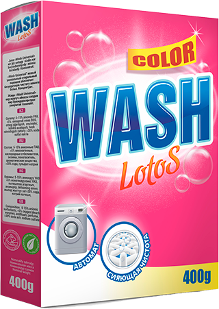 Wash Color – Средство моющее синтетическое для стирки цветных изделий из х/б, льняных, синтетических тканей и тканей из смешанных волокон в стиральных машинах активаторного типа и ручной стирки в воде любой жесткости. С помощью одной пачки вы сможете отстирать более 300 вещей. Состав: 15% анионные ПАВ, неионогенные ПАВ, энзимы, отдушка, силикат натрия, фосфаты, пеногаситель, мыло, 15-30% сода, сульфат натрия. Условия хранения: Хранить при относительной влажности воздуха не более 95%, избегая попадания прямых солнечных лучей нагревания выше +35ᵒС. По истечения срока годности утилизировать как бытовые отходы. Товар сертифицирован.